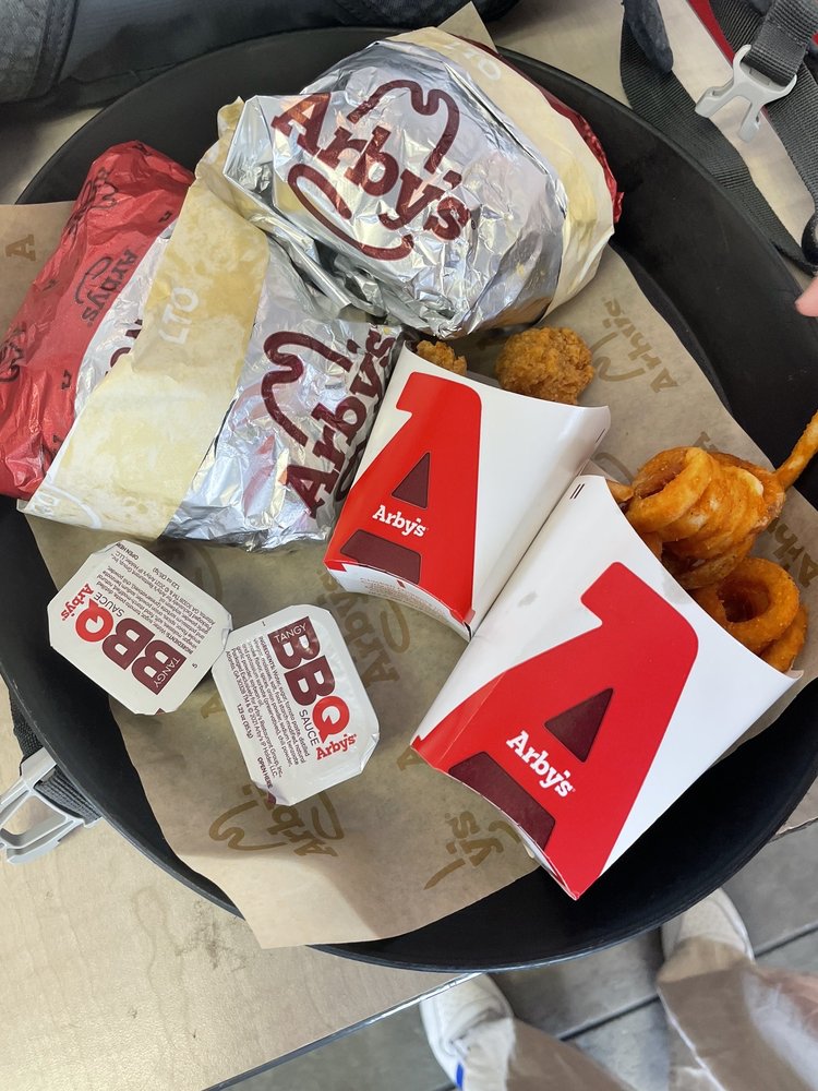 13-hour smoked brisket with crispy onions, cheddar cheese, and smoky BBQ sauce on a toasted brioche bun. TM & 2024 Arbys IP Holder, LLC.Visit arbys.com for nutritional and allergen information.